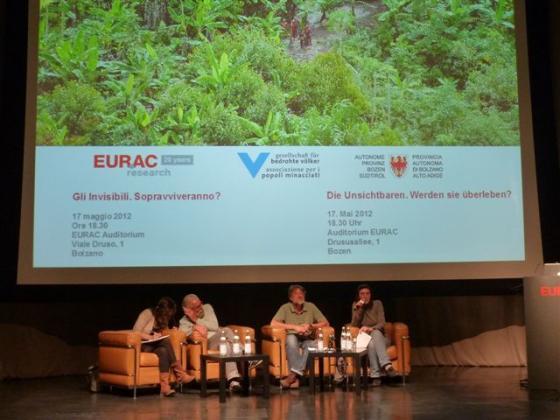 In Brasilien werden sie als „unsichtbar“ und „unkontaktiert“ bezeichnet. Sie meiden jeglichen Kontakt zur Außenwelt und ziehen sich bewusst vor der Zivilisation zurück. Über diese Völker und deren Sprachen ist in Folge dessen nur sehr wenig bekannt. In wenigen Ausnahmefällen gibt es konkrete Hinweise, Filmaufnahmen oder Fotos von ihnen. „Je mehr Menschen über die Existenz dieser Völker Bescheid wissen, desto größer ist ihre Überlebenschance“, so José Carlos Meirelles, der sich seit Jahren auf internationaler Ebene für die Unsichtbaren engagiert. Deshalb hat er auch gemeinsam mit der Gesellschaft für bedrohte Völker eine internationale Kampagne zum Schutz dieser Völker in Brasilien und Peru gestartet. Ziel ist es, diese vom Aussterben bedrohten Völker in das Bewusstsein der Öffentlichkeit zu rücken: durch Informationsveranstaltungen – zu denen auch der Abend an der EURAC zählt - , durch Gespräche mit europäischen Politikern und durch eine Medienkampagne. „Diese Filmaufnahmen“, erklärt José Carlos Meirelles bezugnehmend auf den BBC-Dokumentarfilm „sind die einzige Möglichkeit, die Menschheit davon zu überzeugen, dass diese unkontaktierten Völker tatsächlich existieren. Denn wenn sie auf Holzfäller oder Goldgräber treffen, dann werden sie nicht fotografiert, sondern gleich umgebracht“. Das langfristige Ziel der Kampagne ist der effiziente Schutz dieser Völker und die Rettung des Regenwaldes durch die Schaffung einer grenzüberschreitenden Schutzzone in Peru und Brasilien.